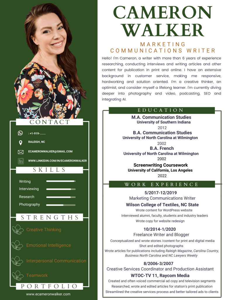E. Cameron Walker, writer, portfolio site